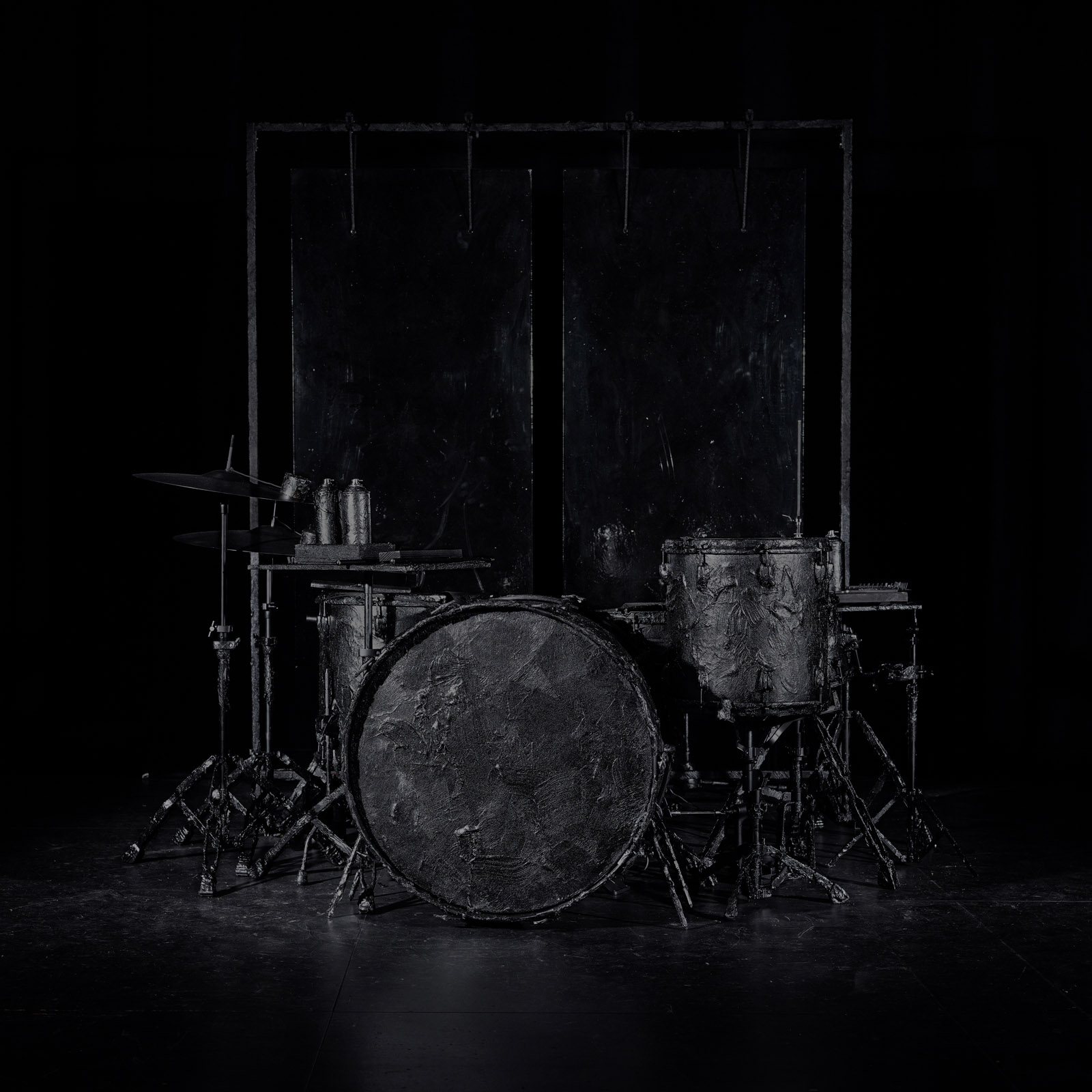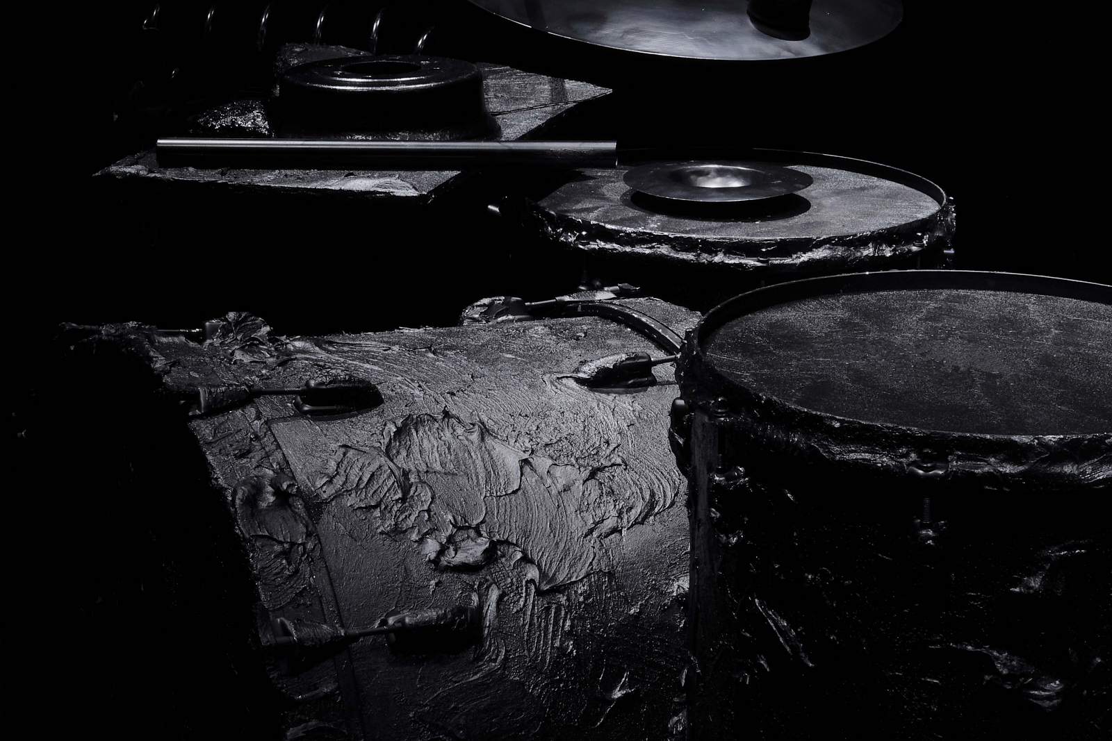 ASPHALTE is an installation-performance consisting of a drum set entirely covered in bitumen and a musical composition dedicated to the instrument. The installation is accompanied by a rock. Florian Bach created a “signature” drum set, for which Alexandre Babel composed a score based on the instrument's unique sound. The drum kit, each element of which has been dismantled and covered in bitumen, has become a sculpture.